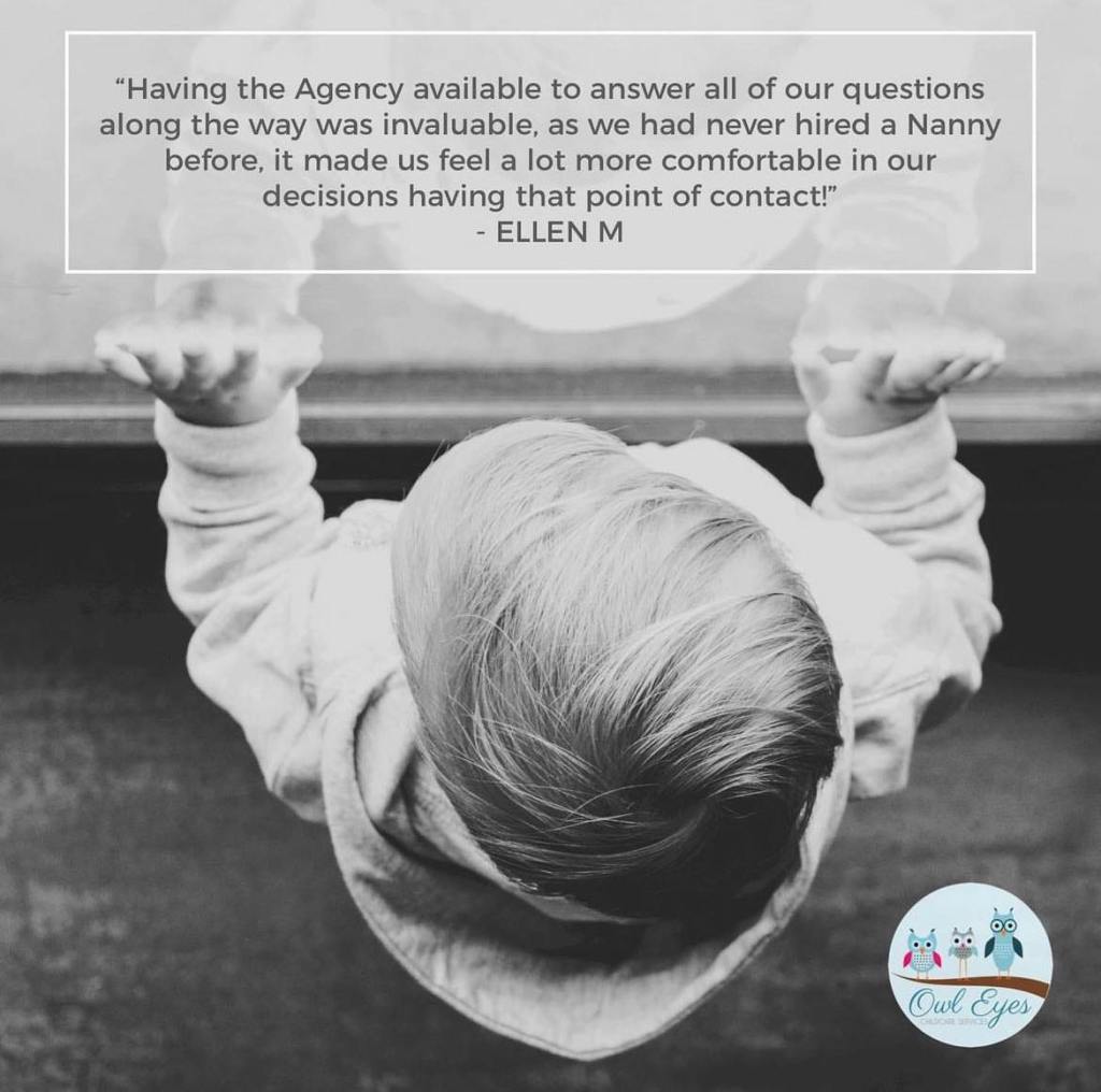 I have been delighted with the service provided by Owl Eyes and the quality of the nannies we have been put in contact with.